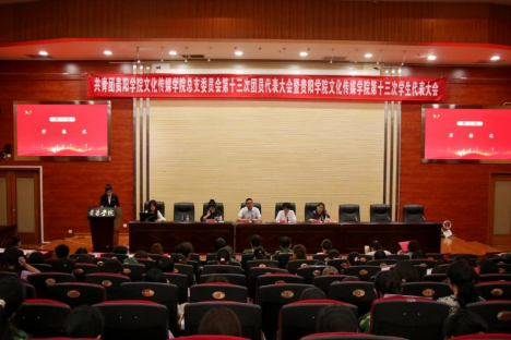 秋风送爽,丹桂飘香。2025 年 9 月 17 日,共青团贵阳学院文化传媒学院第十三届团员代表大会暨第十三届学生代表大会(以下简称 “两代会”)在图书馆一楼报告厅召开。文化传媒学院党委书记鄢吉多、党委副书记张颖、校团委兼职副书记周婷婷及张琼老师出席会议,全院团员代表、学生代表220余人参加。本次大会以“凝聚青春力量,共谱学院新篇” 为主题。